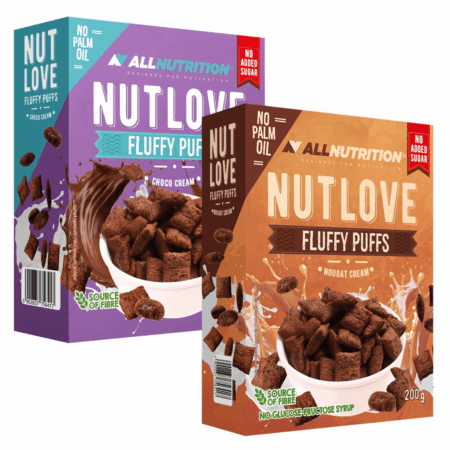 De onovertroffen NUTLOVE-serie – crèmes in tientallen smaken, van klassiek hazelnoot-cacao tot kokos, karamel, amandel en zelfs witte chocolade met pistache. Elke variant heeft een perfecte structuur, intens natuurlijke smaak en een samenstelling die ideaal is voor actieve mensen.