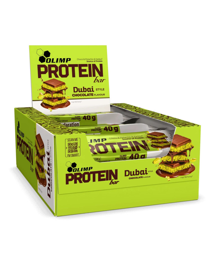 Verwen jezelf met een moment van pure luxe! Geniet van elke hap van de Olimp Protein Bar met Dubai Style Chocolate-smaak! Het is meer dan alleen een snack. Het is zoete verwennerij in een elegante vorm! Probeer het zelf en ontdek hoe het delicate, knapperige kataifi-deeg in de vulling, gecombineerd met een fluweelzachte melkchocoladelaag, een unieke ervaring creëert die zelfs de meest veeleisende fijnproevers zal bekoren. Eet smakelijk!