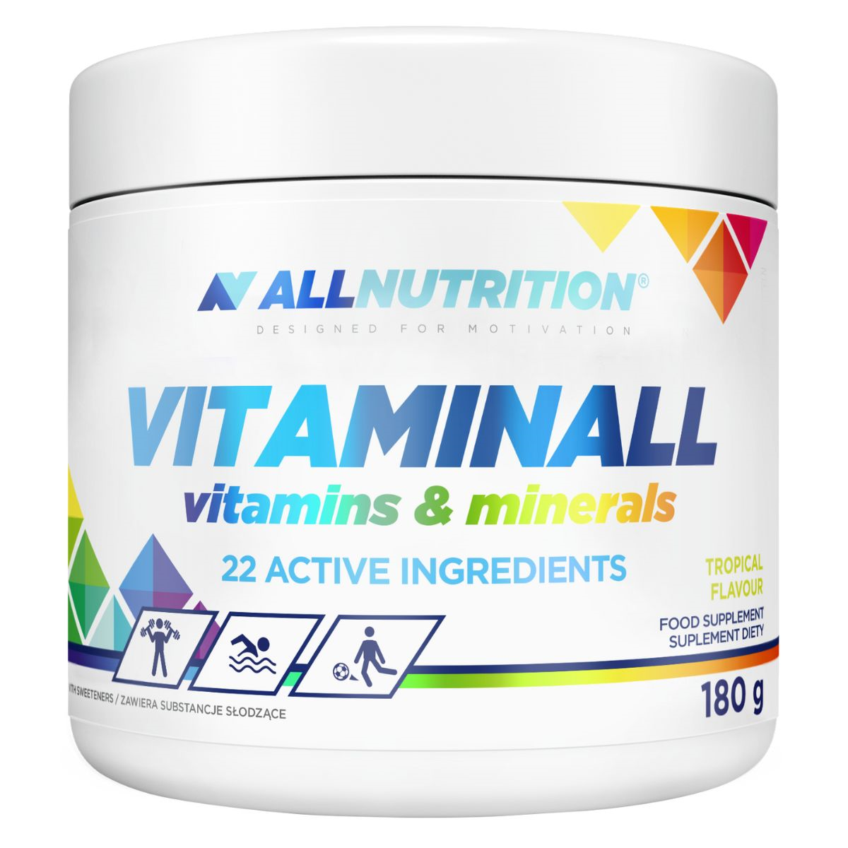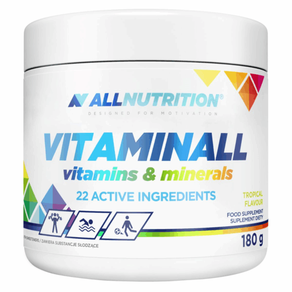 ALLNUTRITION VITAMINALL VITAMINS & MINERALS is een uitgebreid preparaat dat uw dieet aanvult met essentiële vitamines en mineralen. De populairste vitamine- en mineralenformule is nu verkrijgbaar in een nieuwe drinkbare versie!