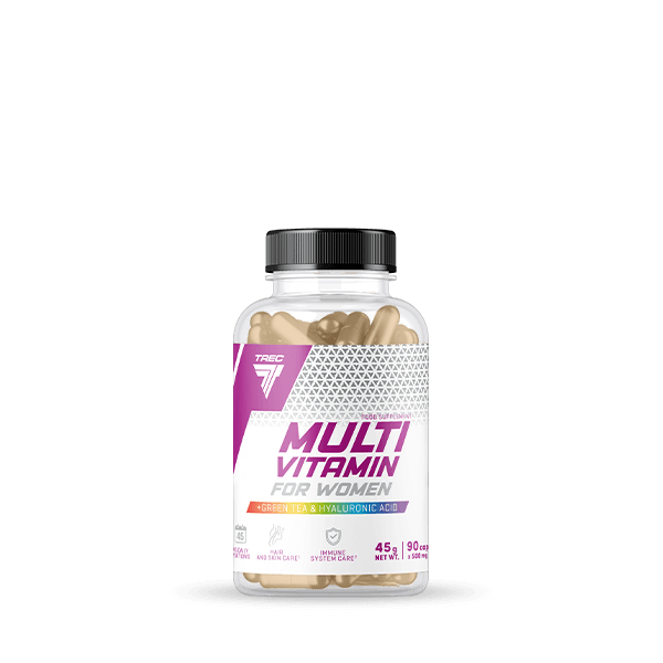 MULTIVITAMIN FOR WOMEN dodatkowo jest wzbogacony o kolagen, ekstrakt z zielonej herbaty, CLA, L-karnitynę, kwas hialuronowy i koenzym Q10.